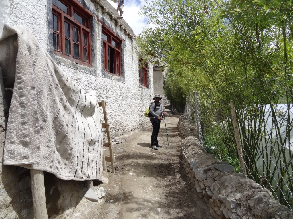 Walking and joyfully talking, we approached a small settlement on a mountain slope. The trail was narrow…with some mustard fields and cattle-shed on the right side and stone houses on the left. The guide told us this is the Rumbak village. On some houses, there were boards indicating they provide home-stays. Apparently, Rumbak is a base for many folks who come looking for snow leopards in peak winter. While there is no way to pre-book your stay in Rumbak homestays, the villagers accommodate all visitors on best effort basis. In case of dearth of visitors, the houses are allocated on round-robin basis thus ensuring equal livelihood opportunities!