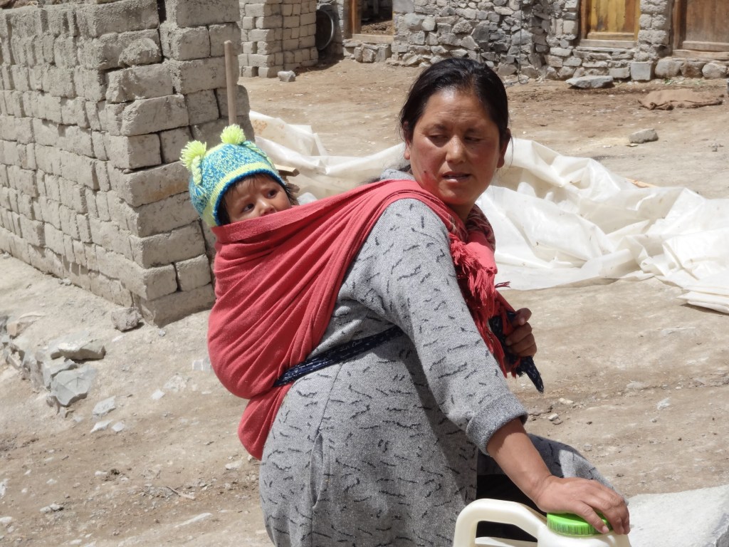 We did spend some time at a small concrete tank, that stood in the middle of a flowing stream, and was being used by the villagers for fetching water for their daily chores. A lady with her baby in a home-made baby carrier made for a great photo op! There were kids around, playing, and some washing clothes further downstream from the tank.