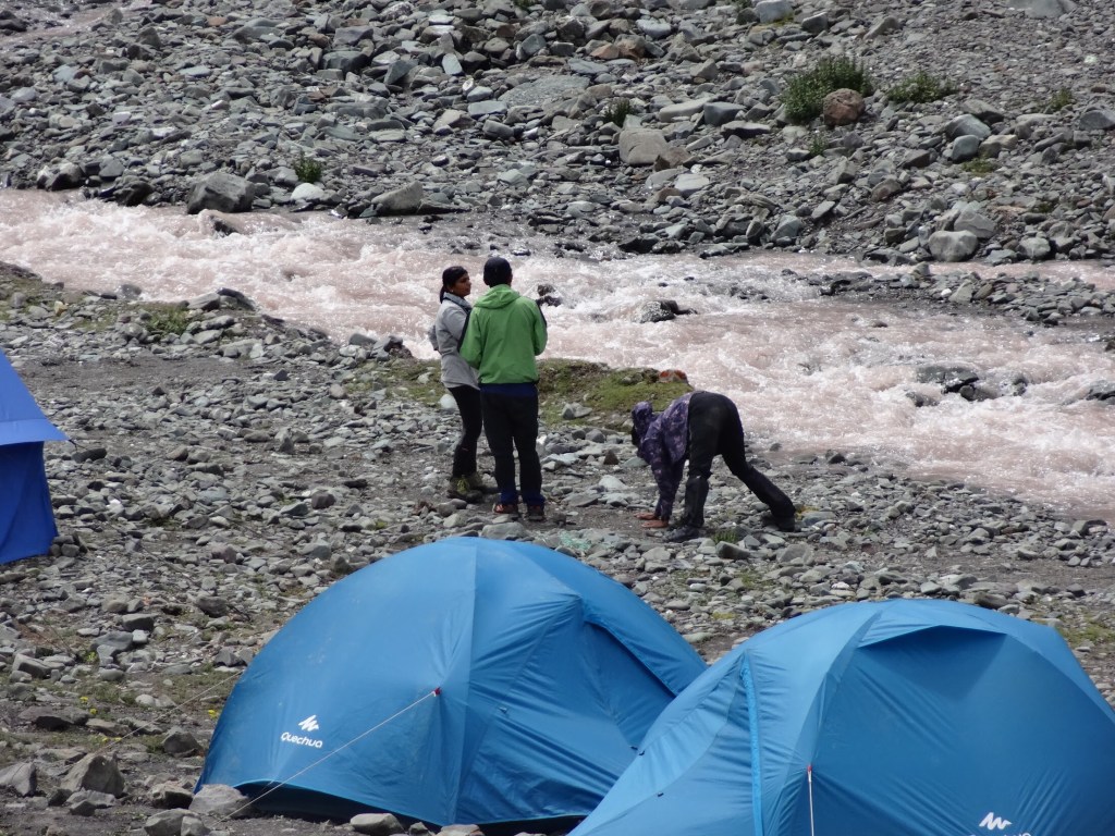 We followed the river further upstream, and, in what looked like a journey without any end, we reached Mankormo base camp, drenched, exhausted, and very sleepy!