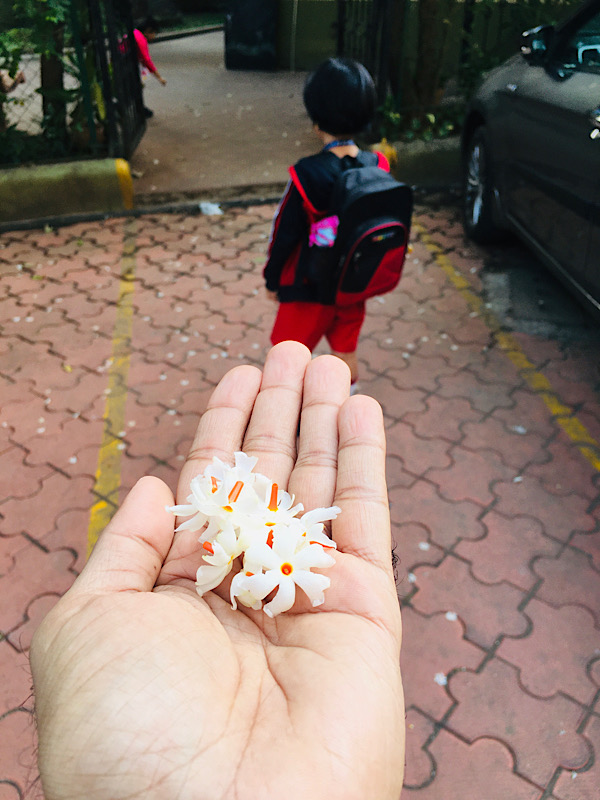 Collecting these fallen, fragrant flowers sounds just about the right thing to do!