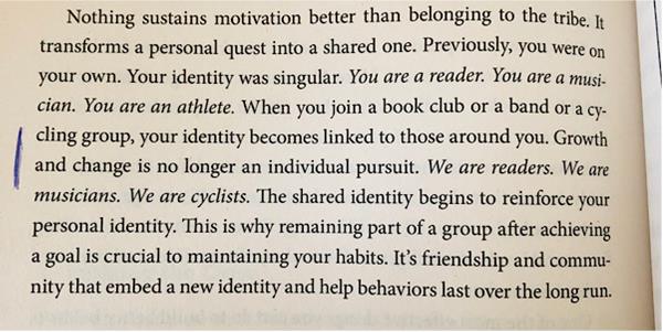 For the bad habits you are trying to break, you will move from “I am trying to quit smoking/drinking” to “I don’t smoke/drink”. That change in your internal dialogue, the identity, is what we are after eventually.